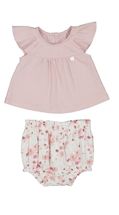 Mayoral Baby Girls Set Baby Rose Pink Top and Floral bloomer bottom.