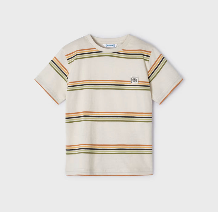 Mayoral Beige Retro Striped Short Sleeve T-Shirt