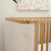 The Bondi Boucle 4-in-1 Convertible Crib celebrates boho-inspired design with its warm wood tone, rounded corners, and cozy boucle upholstery to create a dreamy aesthetic for your nursery . The Bondi is designed to grow with your babe using an included toddler bed conversion rail and is screened for harmful chemical emissions to ensure it meets GREENGUARD GOLD Certification.