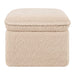 The Cali Storage Ottoman is the perfect blend of style and function. This versatile piece has ample storage for all your baby's extra toys, blankets and more. The easy to lift lid is supported by a soft open and close mechanism to help prevent little fingers getting caught. Upholstered by hand in our texture-rich shearling fabric, this trendy ottoman can be paired with the Cali Swivel Glider or Sunday Electronic Recliner to create a statement piece in your nursery or home.