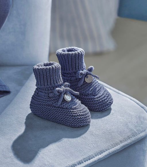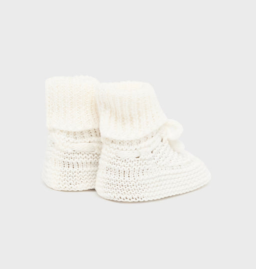 MayoralAbsolutely ADORABLE knitted baby booties perfect for dressing up all their cool weather outfits! Soft bottoms with knit knot and emblem button.