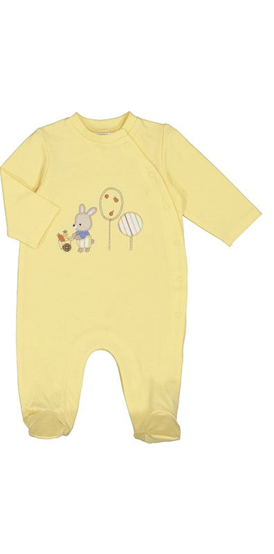 MayoralSky Blue 3pc Footie set with Hat and cut balloon applique.