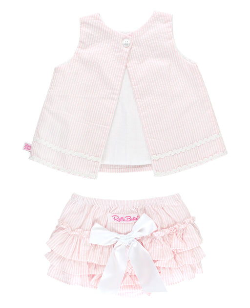 RuffleButtsLittle girls just look so adorable in seersucker! This sweet long sleeve girls' rash guard and bikini set is the go-to suit for vacations and trips...