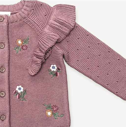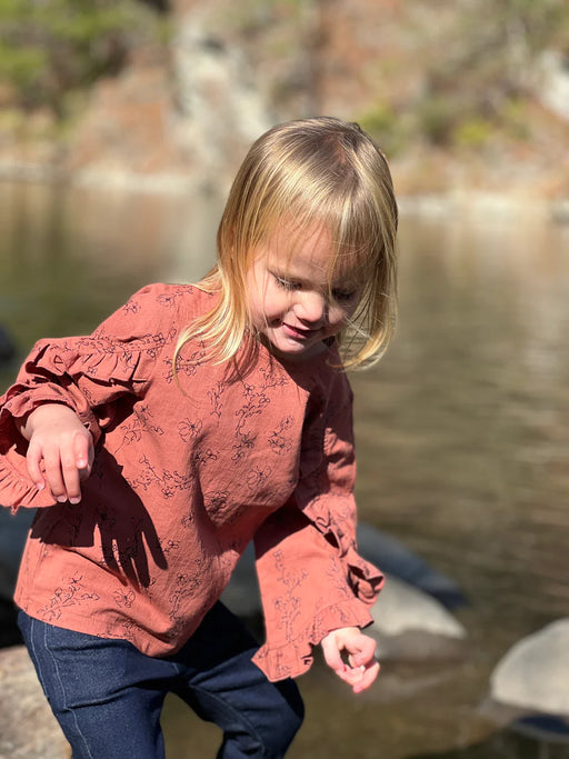MayoralSoft and cozy long sleeve top in a glittery oatmeal color with peplum style hemline and bluebell floral appliqué with embroidered details on the fr...