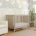 The Peggy 3-in-1 Convertible Crib encapsulates timeless mid-century modern design with its modern, clean silhouette and classic rounded spindles, while the flared tapered legs add a playful touch. The Peggy grows with your babe with an included toddler bed conversion kit allowing you to seamlessly convert from crib to toddler bed to daybed. Made with sustainable materials and GREENGUARD Gold certified for indoor air quality.