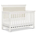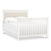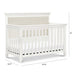 The Darlington 4-in-1 Crib brings the sophistication of relaxed French country style into the nursery. The Darlington balances delicate lines, gently detail molded tapered feet, and a lush upholstered back panel. Crib converts to a toddler bed, daybed, and full-size bed. Available in a Warm White finish.