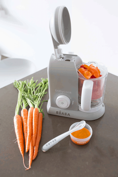 Giving your baby the healthiest start to life begins with feeding baby natural and clean foods from day one. BEABA Babycook® Solo Baby Food Maker is the first and best-selling homemade baby food machine that helps parents make fresh, nutritious purees for baby with natural ingredients they can pick and control. Steam cooking allows food to retain the nutrients that are eliminated through other cooking methods – this baby food maker steams and blends everything from fruits, veggies to meats and fish from raw in 15 minutes or less. Designed with 4-in-1 function, Babycook steams, blends, warms and defrosts all in one sleek machine, eliminating the need for pots, pans, blenders and microwaves. Freshly made by you, you can rest assured baby’s purees will be free from stabilizers, additives, preservatives & yuckies. Cheers to your homemade baby food journey, we can’t wait to be a part of it!