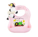 Our Moo Cow Bib and Rattle Set is perfect for littles learning to eat! The two piece set comes with a silicone pocket bib. The gray bib features a floral tractor image with the sentiment "Home Grown." The Tractor Printed bib also comes with a sweater knit rattle that features an adorable cow shape.
