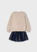 This tan pullover with a sparkling navy flower detail and a crisscross bottom is perfect for pairing with the coordinating skirt or with leggings and jeans.