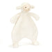 A gorgeous first gift for newborns, the Bashful Lamb Comforter is cloudy-soft in a delicate vanilla cream fur made with recycled fibres. Designed for calming cuddles with an un-stuffed tummy yet squashy soft hands and feet. With cute waggle ears and embroidered face features, this sweet lamb is a present to treasure.