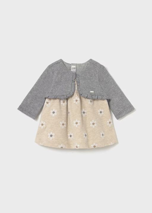 MayoralTan Daisy Print Dress with attached Gray Cardigan