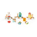 A lovely 2-in-1 train with very soft, contemporary colors and super cute animals: a wooden 3-carriage train to help develop your child's imagination and a pull-along toy to promote motor skills. Comprised of 17 colorful blocks in different geometric shapes to help your baby learn the colors and make their first constructions. Wood: Chinese cherry. Water painting. Blister box.