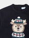 This navy blue sweater with a cute baby reindeer design is sure to be a hit for the winter! It’s a cotton and wool blend of fabric ensuring that it is as soft and warm as it is cute!