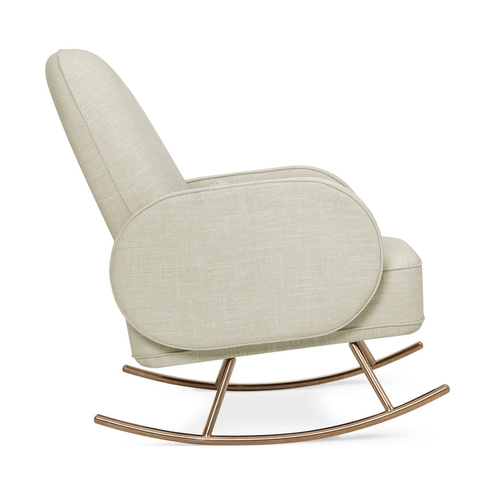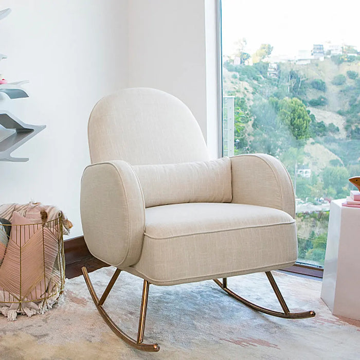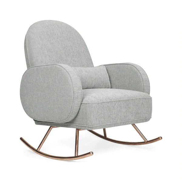 - MODERN LUXE: The compass rocker is a luxurious take on the nursery rocker with a rounded voluminous back and armrests that sit upon elegant rose gold plated stainless steel legs