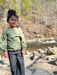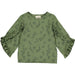 Lola Long Sleeve 100% Cotton Ruffled Blouse in Green Floral Print