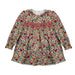 Festive shades of red, green and wheat dance across an oatmeal colored background on this beautiful, floral printed velveteen dress. The ruffled sleeve cuffs and embroidered empire waistline add a touch of whimsy while the full cotton lining keeps baby girl fresh and comfy. Zippered back for easy changing.