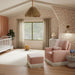 The Crawford glider offers a modern take on the traditional slipcover style and brings nursery comfort to a new level with its plush pillow back design, added lumbar pillow, and wide seat. Its smooth, back-and-forth gliding motion helps you rock your baby to sleep with ease, while the convenient swivel creates an inviting repose for both you and your baby.