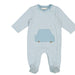 White & Crystal Blue Striped Embroidered Long Sleeve Footie Romper